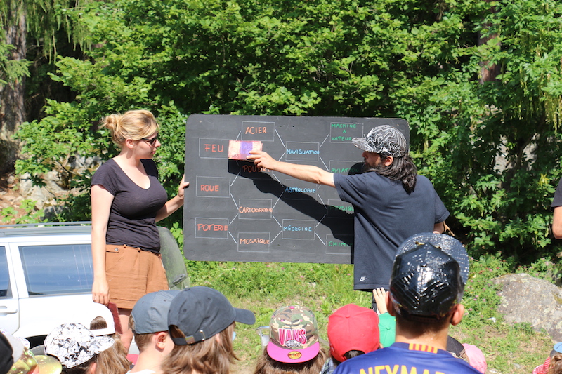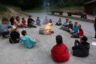 Plus tard dans la matinée, les groupes se sont rassemblés pour les activités de groupe et pour écrire les première cartes postales. Un petit poste était installé pour leur permettre de s’essayer à faire du feu comme nos ancêtres, sans briquet ni allumette. Ils ont tenté l’expérience jusqu’au repas de midi… cela n’as pas suffit.