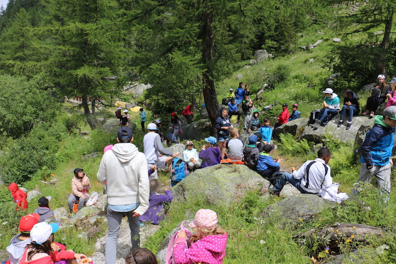 Les plus grands partirent depuis La Caffe, et montèrent jusqu’au col de la Forclaz, ou ils furent rejoint par les petits. Depuis là, tout le groupe de voyageurs partirent en direction du glacier du Trient. Sur la route, nous rencontrèrent une météo digne des Fjord nordique (pluie, brouillard et vents venus des entrailles de la terre).