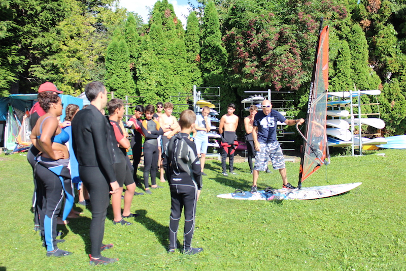 Après une bonne nuit de sommeil à la Colonie et un petit déjeuner copieux, nous nous sommes rendus ce mercredi matin aux gouilles de Martigny. Le programme de la matinée : initiation à la planche à voile. Pendant que le premier groupe s’initiait aux joies de la glisse avec un vent à tout casser, un deuxième a pu faire du paddle et un troisième de la « bronzette ». Tour à tour chacun a pu se hisser sur une planche.