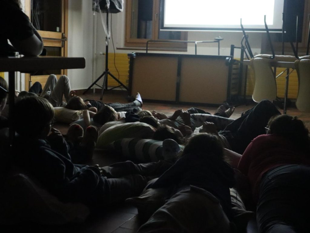 Bientôt arriva l’heure du dîner, moment auquel nous avons pu déguster un délicieux risotto de courge, puis d’une magnifique tarte aux pommes de la région pour la touche sucrée. Mais, la fatigue commençant à se faire ressentir, nous avons donc dû dormir avec une petite sieste fermée afin de se remettre d’aplomb pour la suite. À 14h, les petits partirent sur une île lointaine participer à Koh Lanta pendant que les moyens continuèrent leur compétition et les grands allèrent à la chasse aux fantômes. Après toutes ses émotions, le goûter passe bien (panier de fruits).